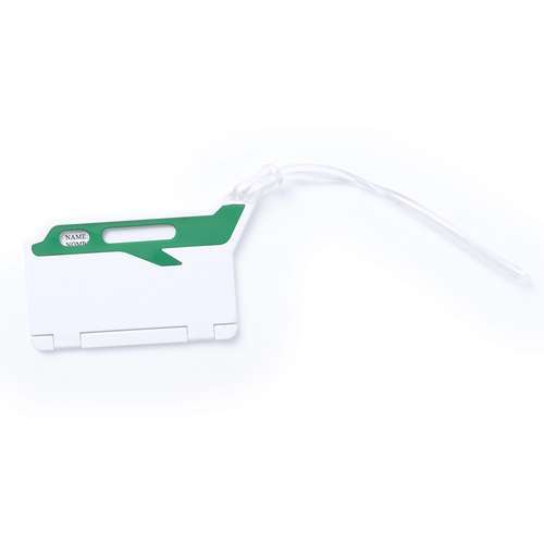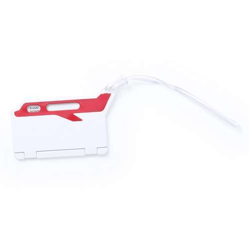 Original identificador de maletas de diseño de avión en resistente material de combinación bicolor. Con resistente cinta de acople y tarjeta de identificación en castellano e inglés.
