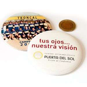 Chapita de 7,5 cm. de diámetro. impresa full color de alta calidad en papel fotográfico.