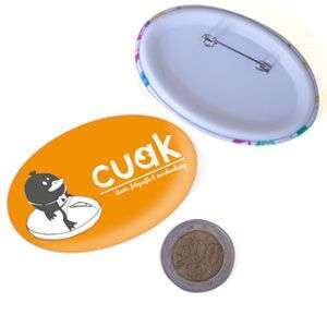 Chapita ovalada 70x45mm impresa full color de alta calidad en papel fotográfico.