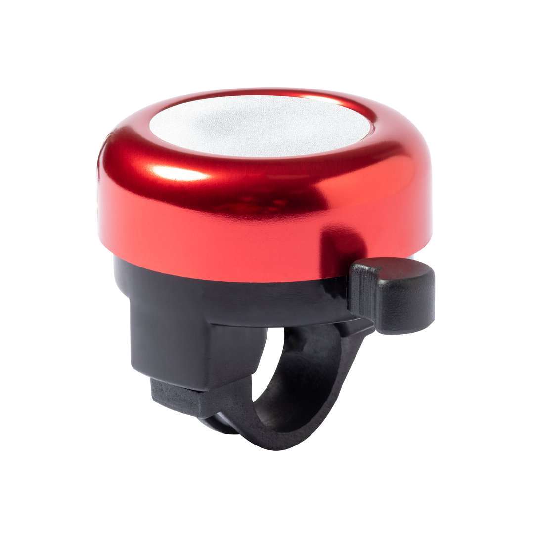 Timbre para bicicleta fabricado en resistente aluminio de acabado brillo. Con ajuste de seguridad para manillar y disponible en variada gama de colores.