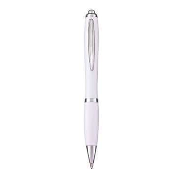 Bolígrafo cuerpo color blanco y toques metálicos . Tinta negra