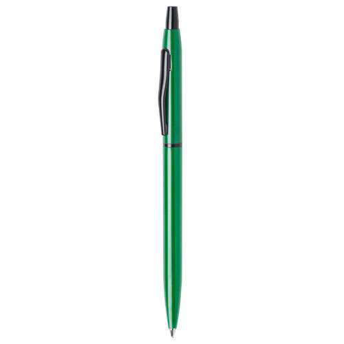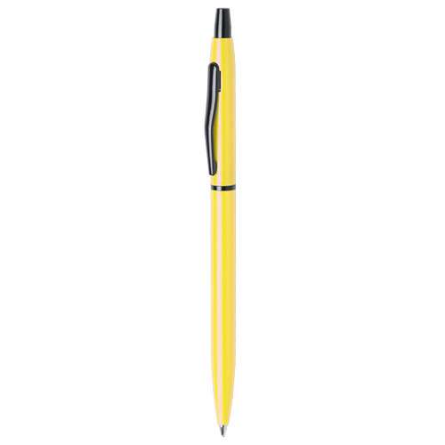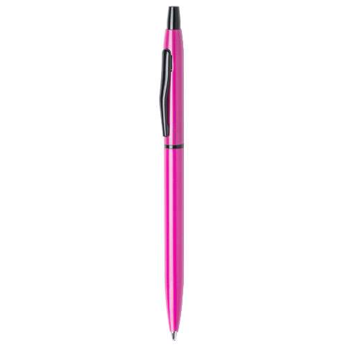 Bolígrafo de mecanismo pulsador en alegre diseño bicolor. Con cuerpo en aluminio de suave acabado en alegres colores. Accesorios y anillas en negro. Original clip en negro, de cartucho jumbo y tinta azul. Carga Jumbo