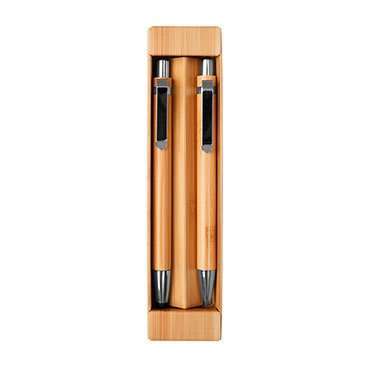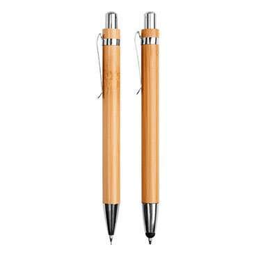 Bolígrafos de Bambú, con punta touch y tinta de color negro. Caja es cartón simulando ser madera