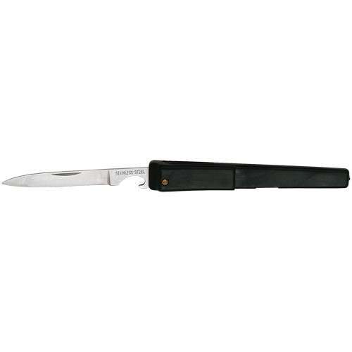 Navaja con hoja de acero inox y resistente empuñadura anti deslizante con clip integrado. Con abridor en mango y presentada en caja individual.
