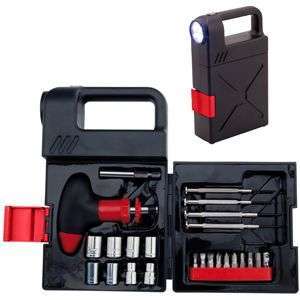 Set de 24 Herramientas. Incluye Linterna 4 LED, en plástico ABS negro.