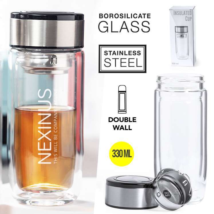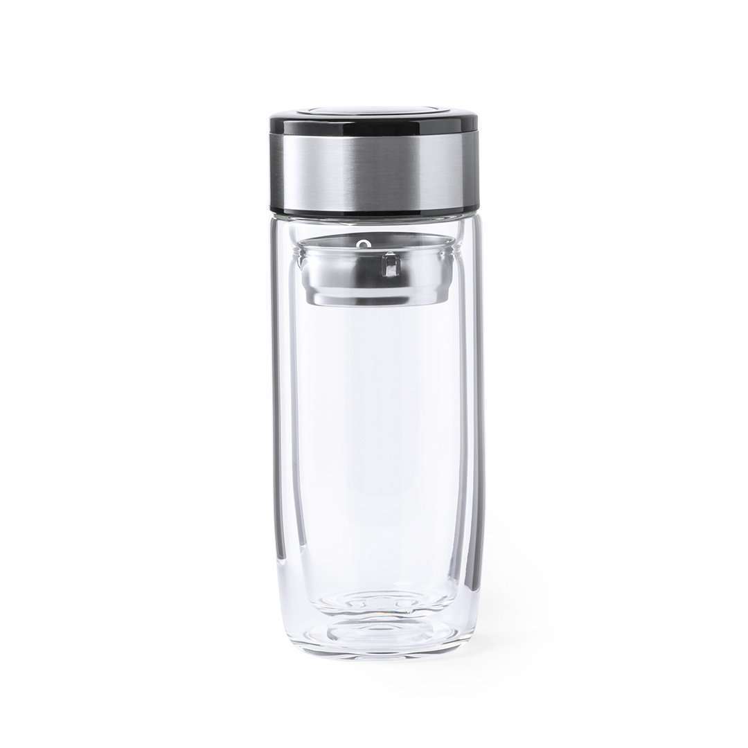Vaso térmico en alta calidad de doble pared y 330ml de capacidad. Fabricado en cristal de borosilicato, que ofrece una resistencia y durabilidad excepcionales, alargando su vida útil y pudiendo ser reutilizado infinidad de veces. Tapón en acero inox con infusor integrado y libre de BPA. Presentado en atractiva caja de diseño. 330 ml. Infusor…