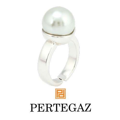 Anillo ajustable de Pertegaz en metal con incrustación de perla de cristal. Presentado en funda con logotipo de la marca.