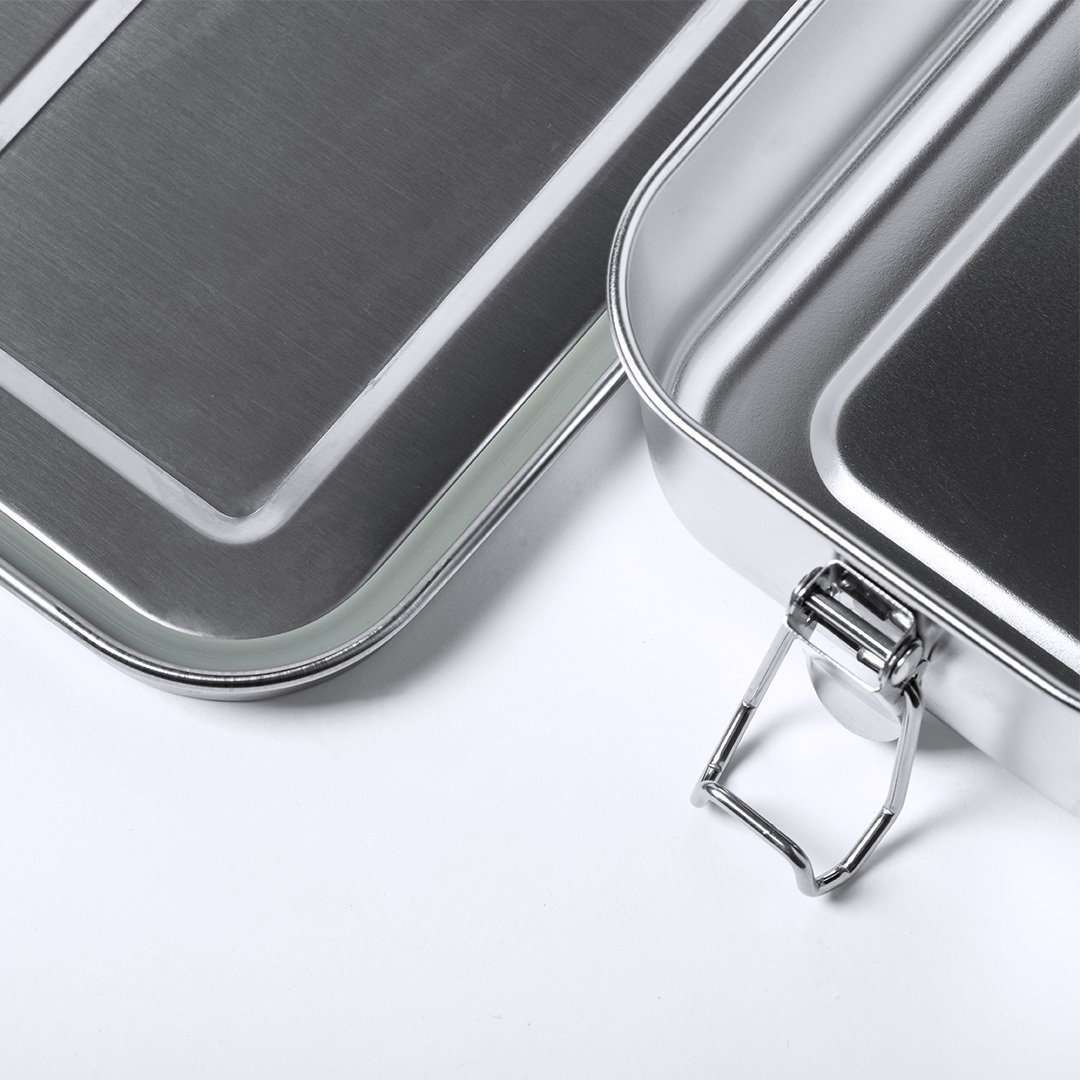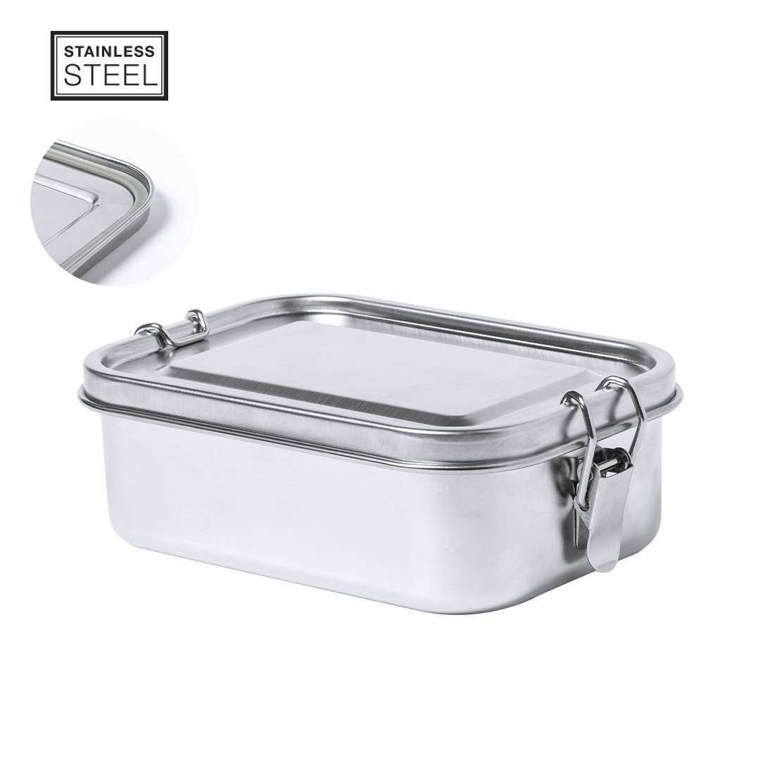 Fiambrera fabricada en acero inox y de 750 ml de capacidad. Cierre de seguridad con tapadera estanca en acero inox. Presentada en atractiva caja individual de diseño. 750 ml. Cierre Seguridad
