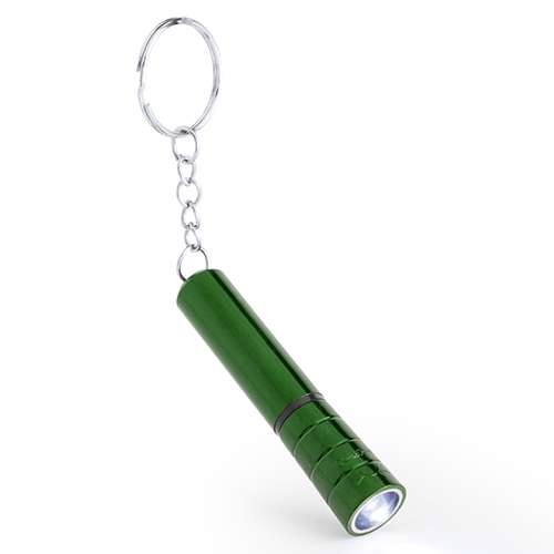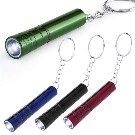 Llavero linterna led con cuerpo de suave acabado brillante en variados colores. Pilas de botón incluidas. 1 Led. Pilas Botón Incluidas