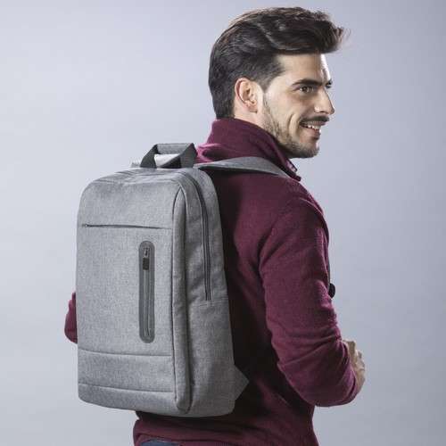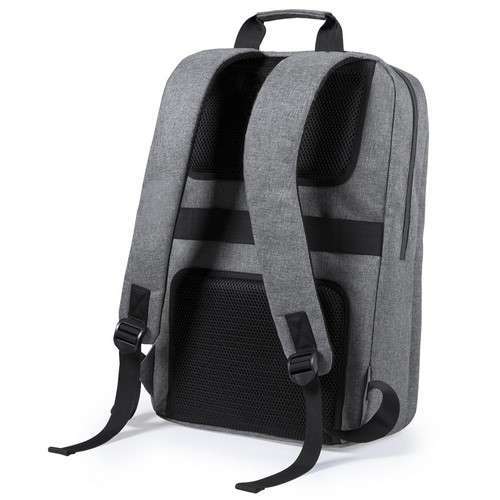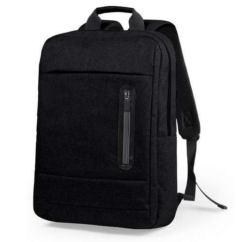 Mochila de resistente nylon 600D de diseño rectangular con cierre de cremallera, bolsillo frontal para smartphone y asa reforzada. Con acolchado ergonómico en espalda y cintas de hombros, incluye compartimento interior acolchado para ordenador portátil de hasta 15 pulgadas. Bolsillo Acolchado para Portátil. Parte Trasera y Cintas Acolchadas