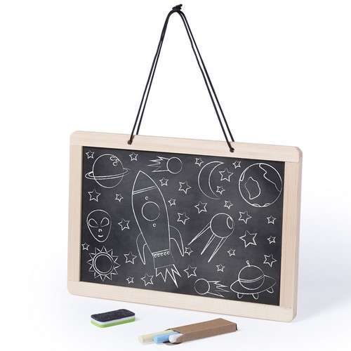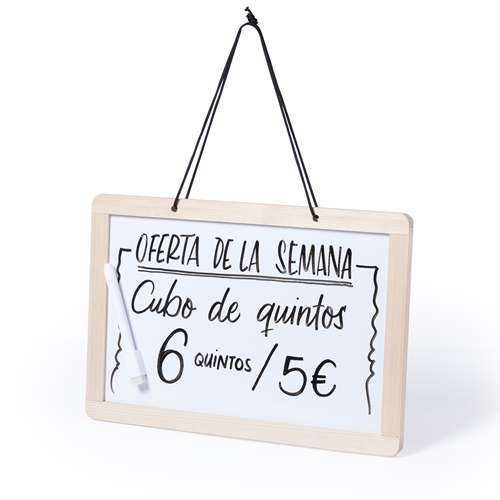 Pizarra para colgar de doble cara. Tradicional pizarra de tiza en una cara con 3 tizas incluidas + pizarra para rotulador en la otra cara -rotulador incluido-. Con borrador de doble cara para tiza o rotulador. 3 Tizas, Rotulador y Borrador Incluidos