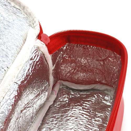 Portabocadillos en resistente PVC de vivos colores y con cierre de cremallera. Con asa en nylon reforzado e interior isotermo en acabado de aluminio.