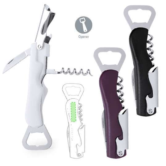 Sacacorchos con abridor de botellas. Accesorios en acero inox y cuerpo en variada gama de vivos colores. Presentado en caja individual.