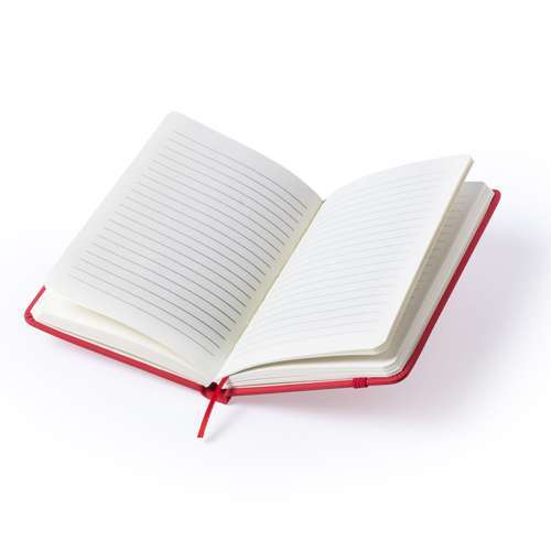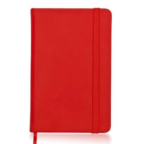 Bloc de notas con tapas de suave tacto, acabado en polipiel y en desenfadados colores. Con 100 hojas de distribución a una raya, elástico de sujeción y marcapáginas de tela a juego. Portada Rígida. 100 Hojas
