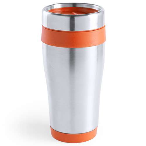 Vaso de acero inox de 450ml de capacidad con cuerpo de acabado brillante con accesorios a juego y en vivos colores. Con tapa dosificador de seguridad y presentado en atractiva caja de diseño. 450 ml. Presentación Individual