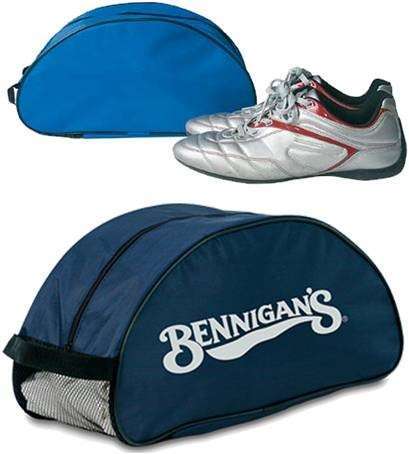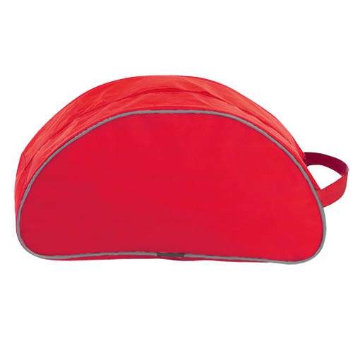 Zapatillero en resistente poliéster 420D en amplia gama de vivos colores con cremallera y cómoda asa de transporte a juego. Con redecilla de ventilación y ribete de refuerzo a juego en color gris.