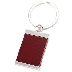 Llavero Metálico con cuerpo de madera barnizada café moro. Presentación en estuche laminado café con cuna aterciopelada.