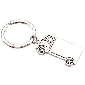 Llavero Metálico camión, con forma de camión. Presentación en estuche laminado negro con cuna aterciopelada.
