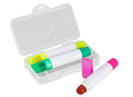 3 destacadores de cera. poseen dosificador Dimensiones: Estuche 8.6 x 5 x 2 cm / Cada destacador 1.3 x 8 cm