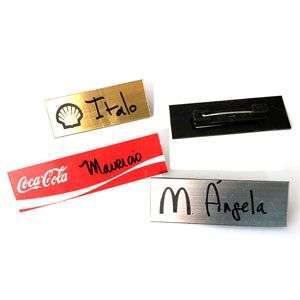 Piocha acrílica rectangular o cuadrada del tamaño que necesite para escribir nombre con plumón permanente. Todos las piochas tienen broche tipo gancho o tipo mariposa.